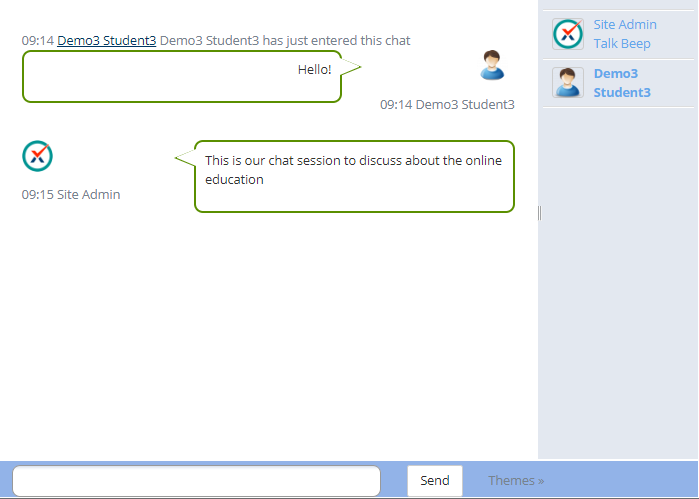 - Users can change the appearance of the messages by clicking on "Themes" next to the "Send" button. Alongside the default course theme, there are two other available themes: 'Bubbles' and 'Compact'.