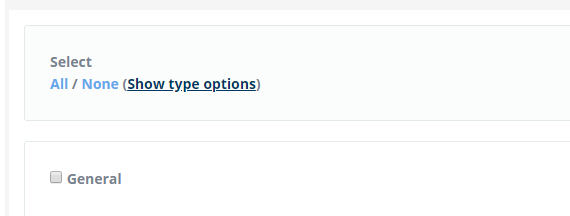 - If desired, select specific types of activity to be backed up by clicking the link 'Show type options'. If you select a specific type of activity, such as SBA, make sure to select the week it belongs to.