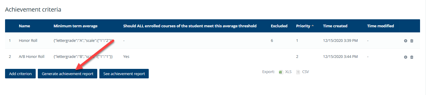 On the next page, you will add the details of your criterion for an achievement such as honor roll. Once done, add your next criterion such as A/B Honor Roll.