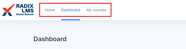 |  | NavBar for easy access to dashboard, site home, My courses. |