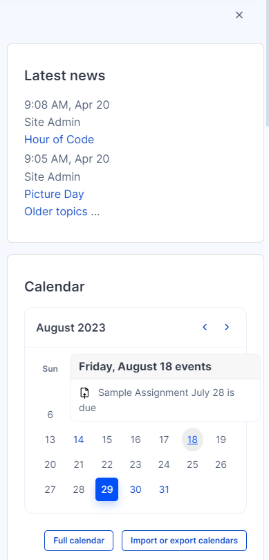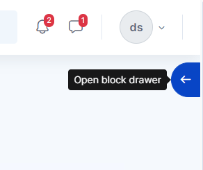 |  Block Drawer | The block drawer area is the place you can find the quick links, site news, calendar, upcoming events, and user files. There may be other blocks added in this area by your school administration. You can open your blocks drawer by clicking on the arrow shown below.  |
