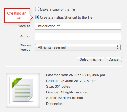 - If an alias is created, then when the original file is updated, it will change in all instances of the alias. So a teacher might add course notes to their private files for example, and then add them into a number of courses. When the teacher makes an alteration in the file in their private files, this alteration will be reflected in all instances of the course notes.