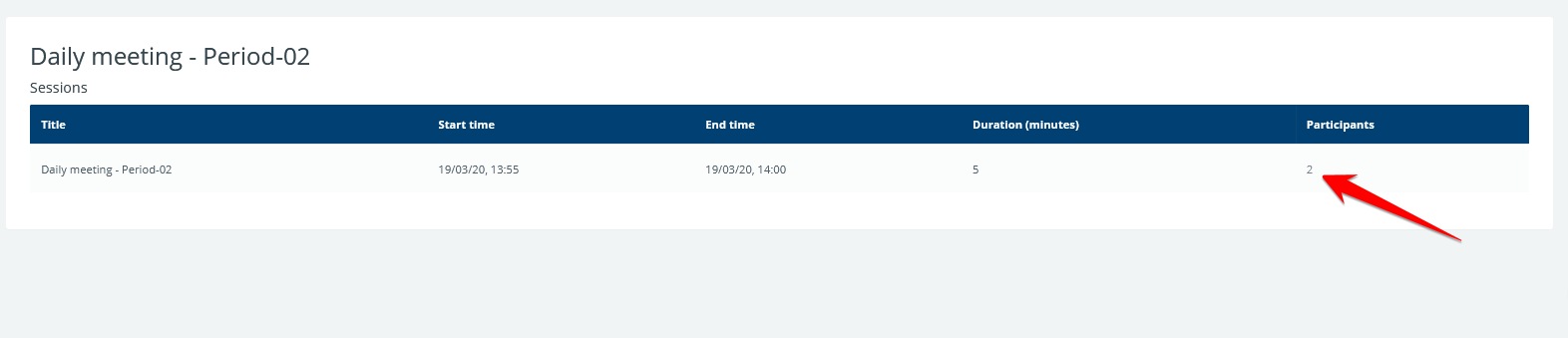 if you want to see who participated to your live meeting, click on the "sessions" link of your meeting. In here, you will see how long this meeting lasted, start-end times and number of participants.