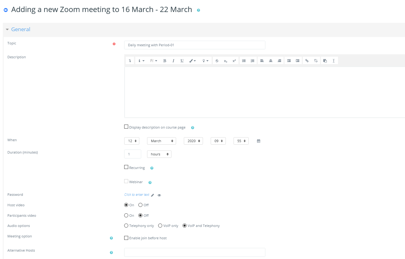 | Topic | Title of your Zoom Meeting that will be shown to users |